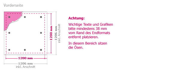 Verarbeitung: umlaufend verstärkt und ca. alle 50 cm geöst