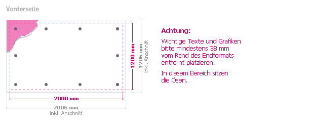 Verarbeitung: umlaufend verstärkt und ca. alle 50 cm geöst